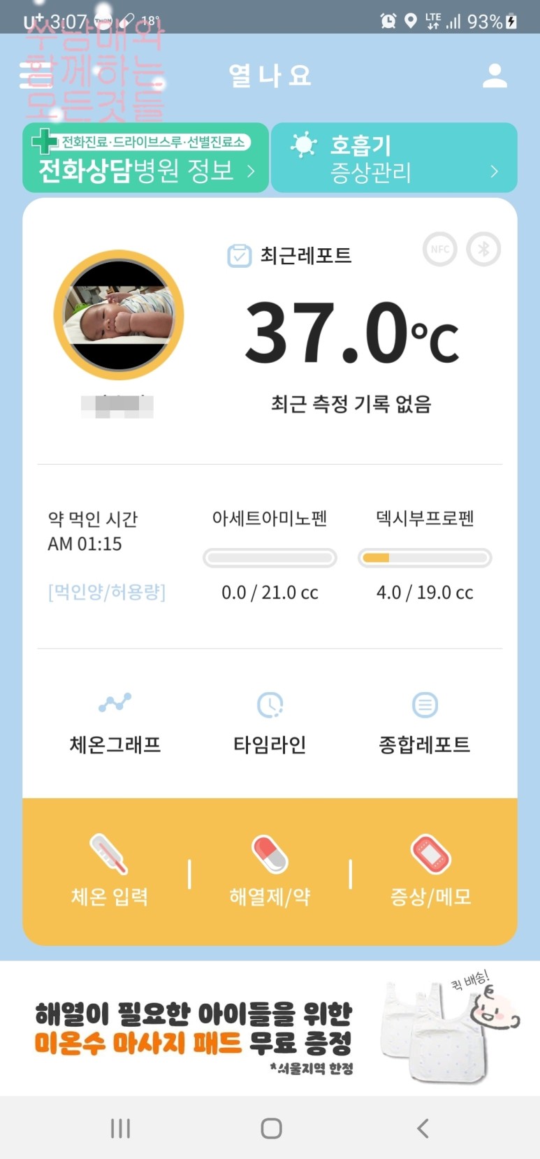 그리고 병원에 갔을 때 의사에게 가장 고열이 났을 때는 몇 도였는지, 마지막 해열제를 먹인 시간은 언제인지 알려줄 수 있어서 좋아요.