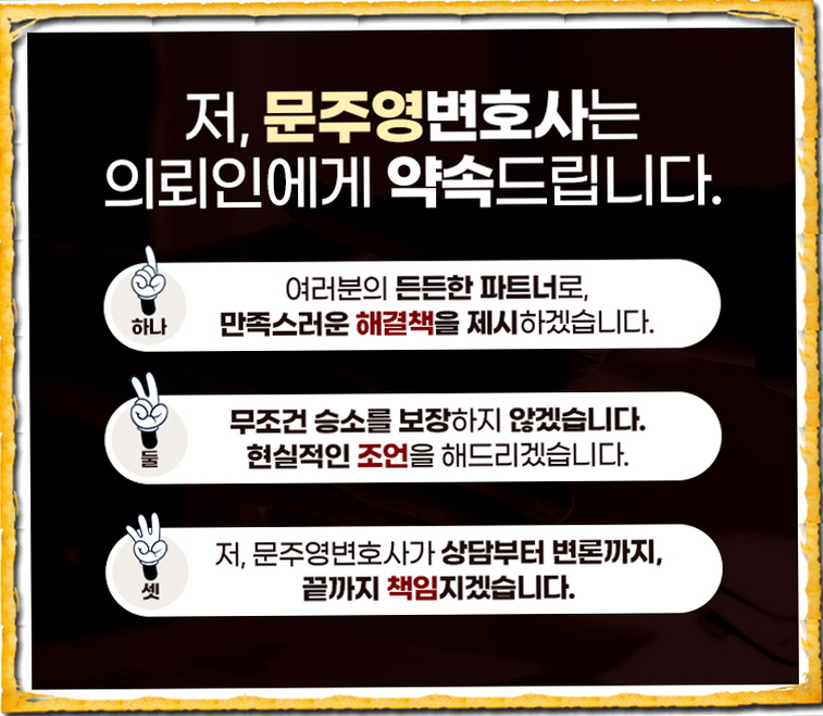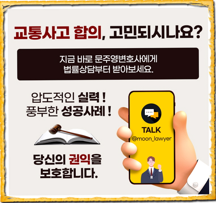 문주영 형사 전문 변호사는 다양한 교통사고 소송에서 승소하여 의뢰인의 권익을 보호해 왔습니다. 여러분도 교통사고 합의서를 작성해야 하는 상황에 처해 계신가요? 지금 자문을 구해주세요 여러분만을 위한 1:1 솔루션을 제시합니다.