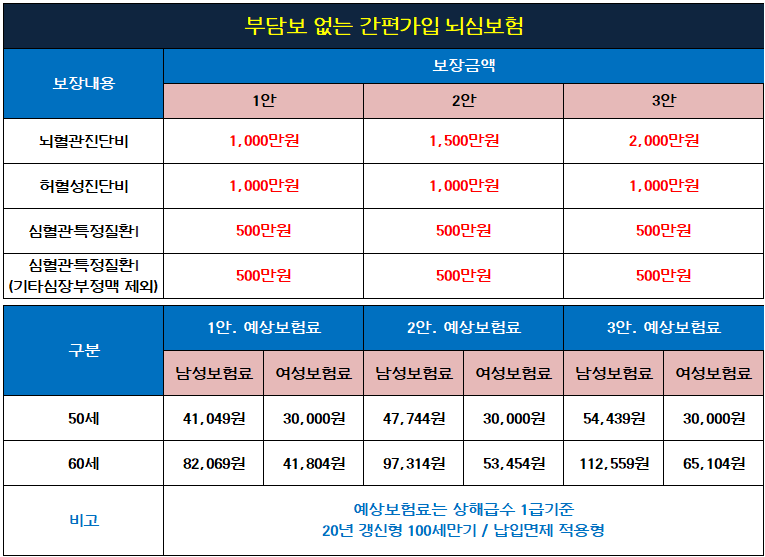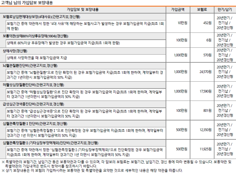 보험사의 상품별, 성별, 연령, 직업에 따라 가입 가능한 담보나 가입금액, 보험료 등은 달라질 수 있습니다.
