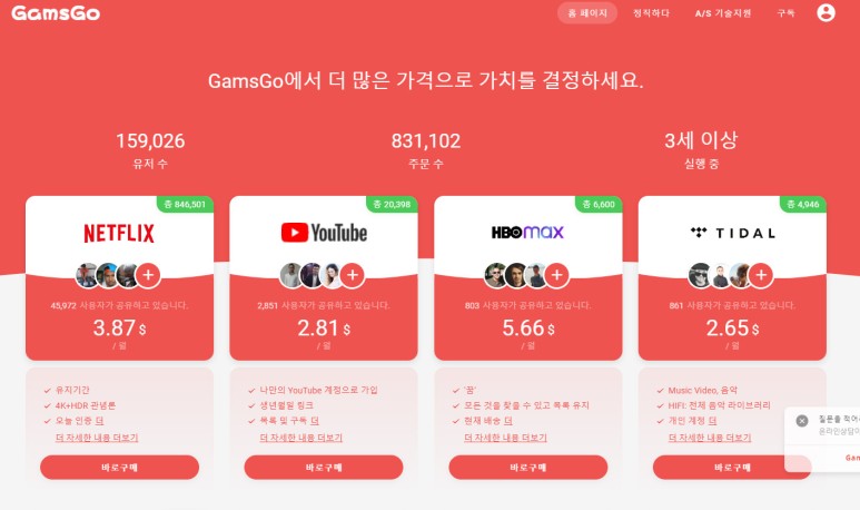 다음은 넷플릭스 계정 공유가 있습니다. 이것도 굉장히 우량한 넷플릭스 할인 방법 중 하나로 말씀드릴 수 있습니다. 지인끼리 4명까지 공유하면서 요금을 납부하게 되면 부담이 줄어들기 때문에 이런 부분을 활용하시는 분들이 가장 일반적이라고 할 수 있습니다. 만약 넷플릭스 계정을 공유하는 지인이 존재하지 않더라도 넷플릭스 요금제를 할인받을 수 있는 방법은 다양한데요. Gamsgo 등의 사이트를 이용해 주십시오.