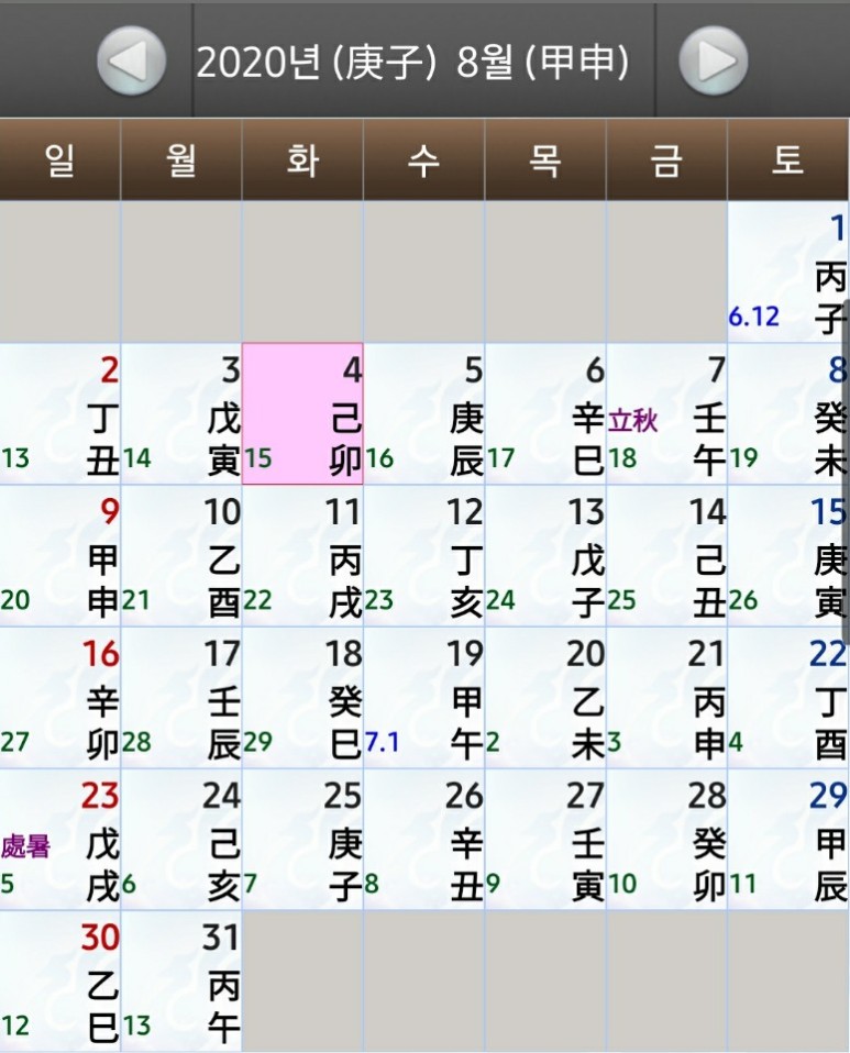 운세 갑신월 1일 1진 [무료 운세 보기] 2020년 8월 4일 오늘의