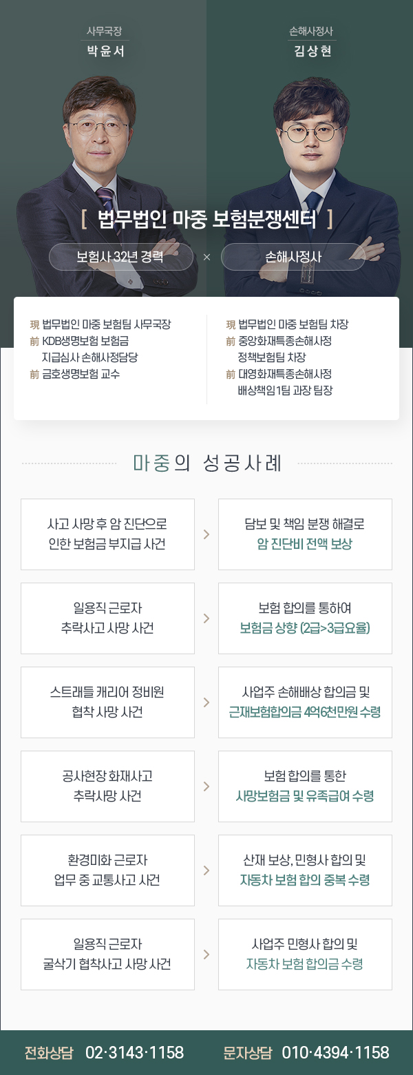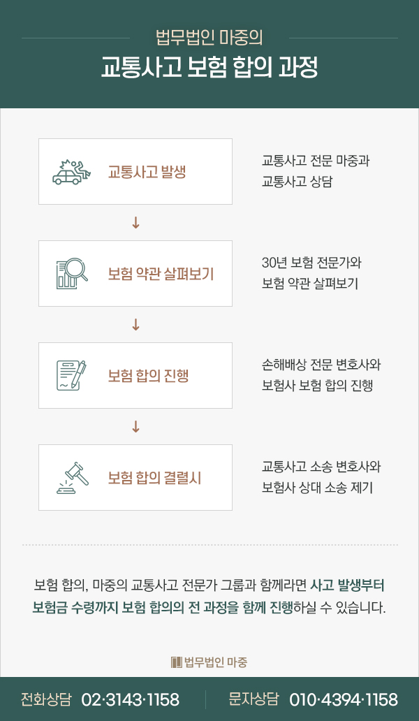 따라서 교통사고보험의 합의금을 받으려고 소송 등을 진행하는 경우에는 법률대리인과 함께 준비하는 것이 좋습니다. 일반인은 교통사고를 당하는 경우가 많지 않기 때문에 관련 자료를 수집하거나 법정에서 이야기를 나눌 때 어려움이 존재합니다. 이러한 일을 교통사고보험 합의금 전문 법률대리인의 도움으로 보다 쉽게 진행할 수 있사오니 권장합니다.
