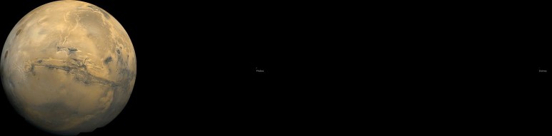 태양계 네 번째 행성인 화성(Mars)은 두 개의 위성을 가지고 있습니다.”외근을 공전하는 데이모스(Deimos)는 1877년 8월 12일에 발견됐고, 내근을 공전하는 포보스(Phobos)는 6일 뒤인 8월 18일에 발견되었습니다””두 위성 모두 미국 천문학자인 아사프 홀 (Asaph Hall 1829~1907)이 당시 세계 최대 망원경이었던 미 해군 천문대의 26인치 굴절 망원경으로 발견했습니다”포보스와 데이모스는 그리스 신화의 전쟁의 신 아레스(Ares, 로마 신화의 Mars)의 쌍둥이로 각각 공포와 패배를 의미합니다.