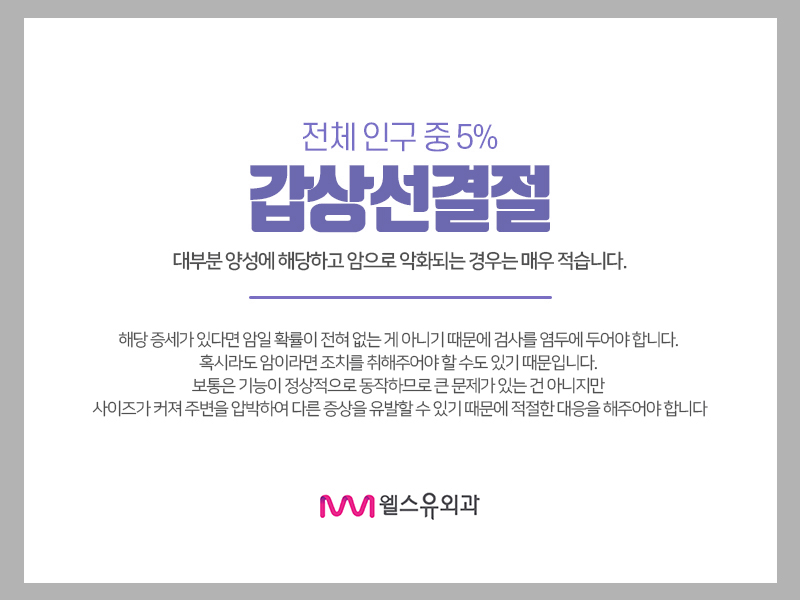 광주 갑상선 결절을 예방하는 특별한 방법은 없습니다. 다만, 불편한 점이 있으시면 신속히 내원하여 증상에 대해 정확히 알아볼 수 있으며 정기적인 추적 관찰 및 정기적 관리가 가장 좋은 관리 방법이 될 수 있습니다.불쾌감을 느끼거나 관리가 필요하신 분은 웰스유외과에 문의하시기 바랍니다.