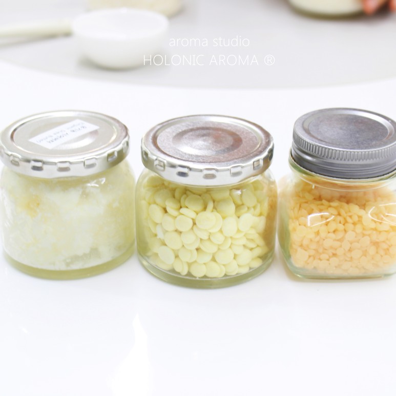 자격증반인 황선생님이 건성 피부라 아주 촉촉한 핸드크림으로 제작했습니다. 발라보면 부드럽게 흡수되는 버터 핸드 크림에는 비즈 왁스가 포함이 됩니다. 그러고 보니 자격증 클래스로 제작하는 화장품 중에서 핸드크림만 비건 화장품이 될 수 없네요. 비즈 왁스를 제외하면 모두 천연 비건 원료로 구성되어 있습니다.