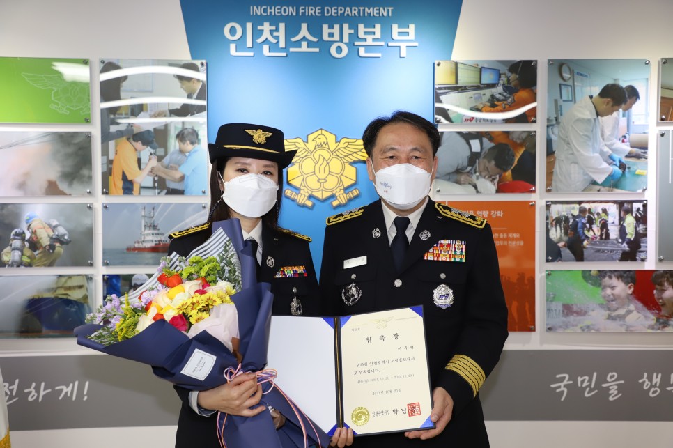 관련 기사 이미지(사진=인천소방본부)가 아나운서는 9일 오전 소방의 날 행사를 하고 오후에는 화재 예방 홍보 이미지 촬영, 인천119스토리 뉴스레터 인터뷰, ○○의 기적 홍보 내레이션 등으로 활동을 시작했다.