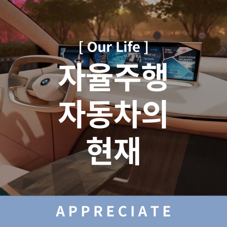 자율주행 자동차가 상용화된 미래는 어떤 모습일까요? BMW는 세계 최대 가전전시회 CES 2020에서 자율주행자동차의 실내공간 콘셉트인 BMW i 인터랙션(Interaction) EASE를 선보이기도 했습니다. 자동차 앞 유리 전면에 파노라마 헤드업 디스플레이 기술을 내장해 탑승자가 운전하지 않는 동안 휴식을 취하거나 업무를 보는 등 여가시간을 즐기는 모습을 구현했다고 합니다. 자율주행차 실내공간, 영상으로 만나보세요!지금까지자율주행자동차의개념을통해현황이나기대효과에대해살펴보았습니다. 오래 전부터 화제가 되었던 자율주행기술이 빠르게 진화하고 있는 모습을 체감할 수 있었습니다. 자율주행차가 단순 이동수단을 넘어 개인만의 공간으로 거듭나고 있는 점도 눈여겨볼 점이라고 생각합니다. 언젠가 도로 위를 달리는 자율주행자동차의 모습을 기대하며 오늘의 포스팅은 여기서 마치겠습니다.