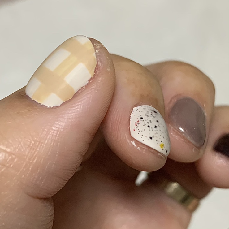 근데 자세히 보면 마무리 시작망사가 크라고 요청한 체크는 내 손톱 사이즈에 안 맞게 강아지 두껍게 그려져서 완전 춤+하얗게 보이고 큐티클 제거도 제대로 안 돼서 손가락 여기저기 젤 네일 덕지덕지 붙어서 잘 지워지지 않나 제거+아트까지 하는데 한 시간밖에 안 걸린다고 했던 네일을 받으면서 이렇게 실력 없는 분은 처음 봤어 이거 4-5만원이잖아요 6만원 넘게 줬어.