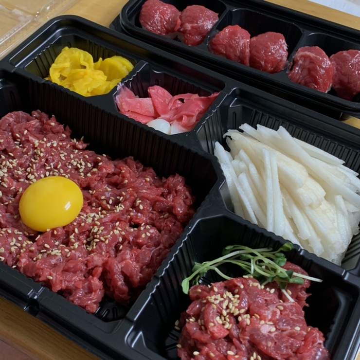영자 언니가 육회를 너무 맛있게 먹어서 먹고 싶은 걸 골라 주문했다가격도 저렴하고 육회초밥도 주시고 너무 좁다.