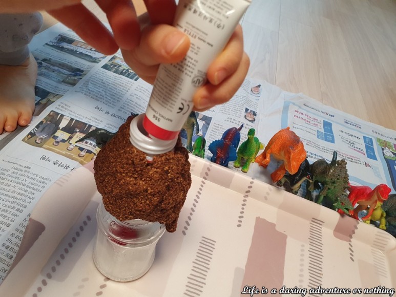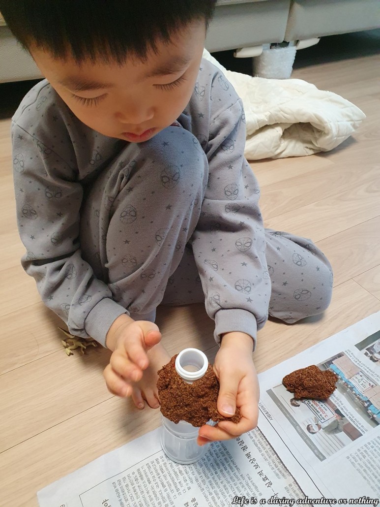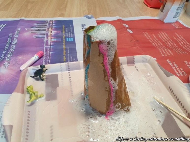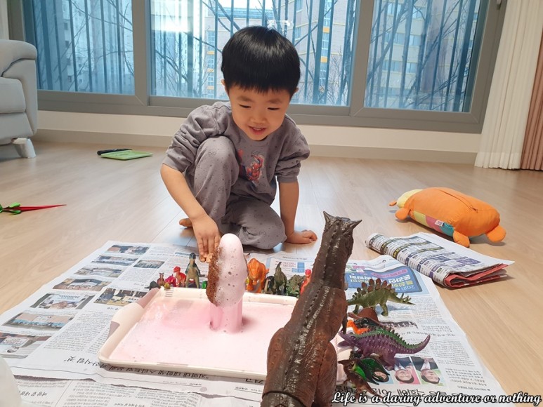 아이와 집에서 엄마표 화산폭발놀이 그 다음날… 아이가 아침에 일어나자마자 또 화산폭발놀이를 하고싶다 함ㅠㅠㅠ
