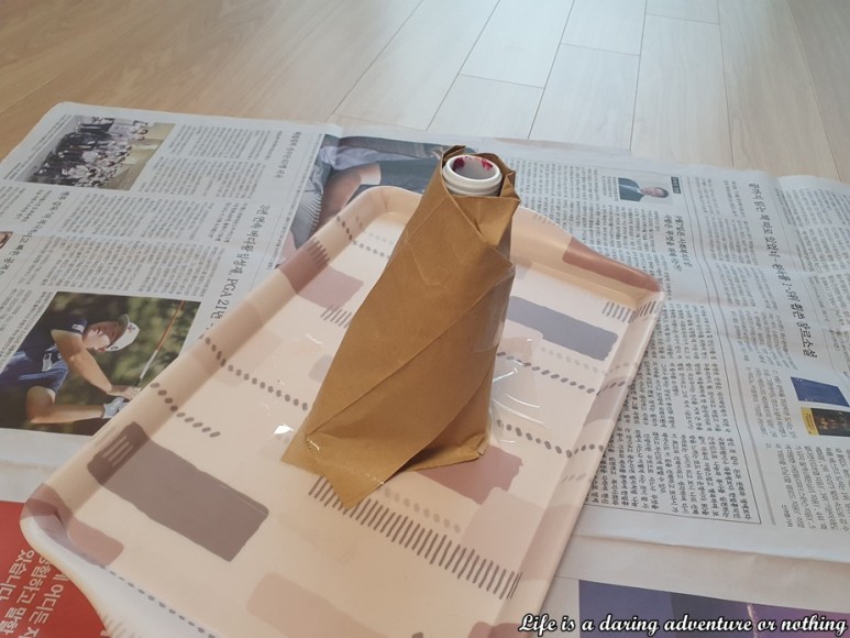 어제 사용한 페트병 그 마마클레이 대신 종이봉투를 잘라내 페트병에 감았다.뭔가 화산처럼 보이나?