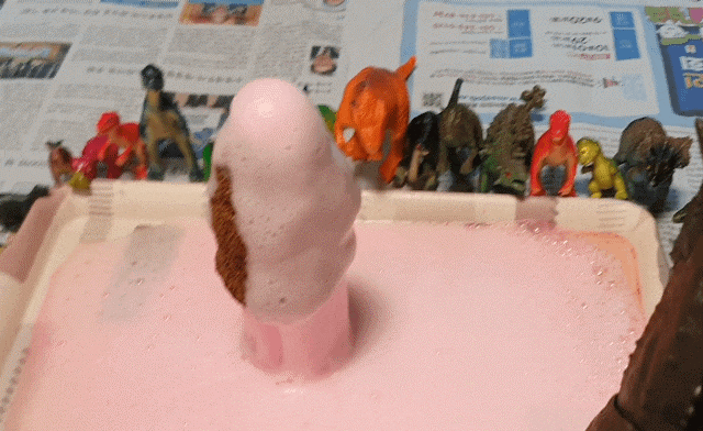 음..그런데 약해..용암 분출을 보다 극적으로 내기 위해 주방 세제를 한 스푼 넣었더니..