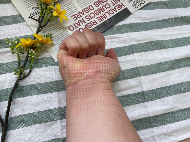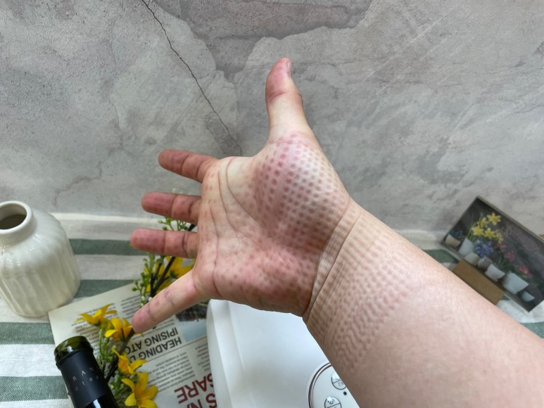 처음부터 보습제를 바른 상태에서 장갑을 착용하고 시작하면 꽉 누르는 동안 피부를 부드러운 상태로 만들어 줍니다.손목터널증후군 증상으로 생긴 피로도 날려버리고 자주 사용하기 때문에 거친 손 전체도 관리할 수 있어 일석이조라고 생각했습니다.