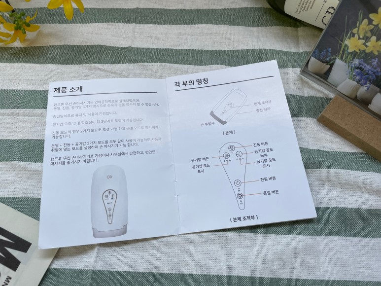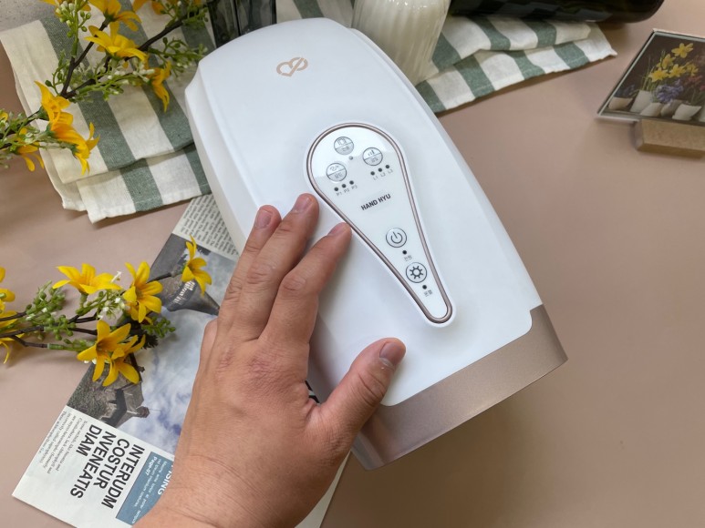 이 기기는 손목이나 손바닥 중 불편한 부분을 고른 상태에서 일정한 세팅을 마치면 원하는 부분에 공기압을 불어넣어줍니다.직관적이고 단순하게 만들어진 상단부 버튼을 조작하면 바로 마사지를 시작하기 때문에 컨트롤하는 것이 어렵지 않아요.