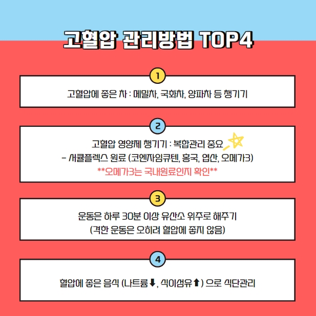한 번 오른 혈압은 떨어지기 어렵기 때문에 다양한 방법을 병행해 줄 필요가 있습니다.예를 들어, 식사와 운동, 영양제 섭취와 같은 것입니다.