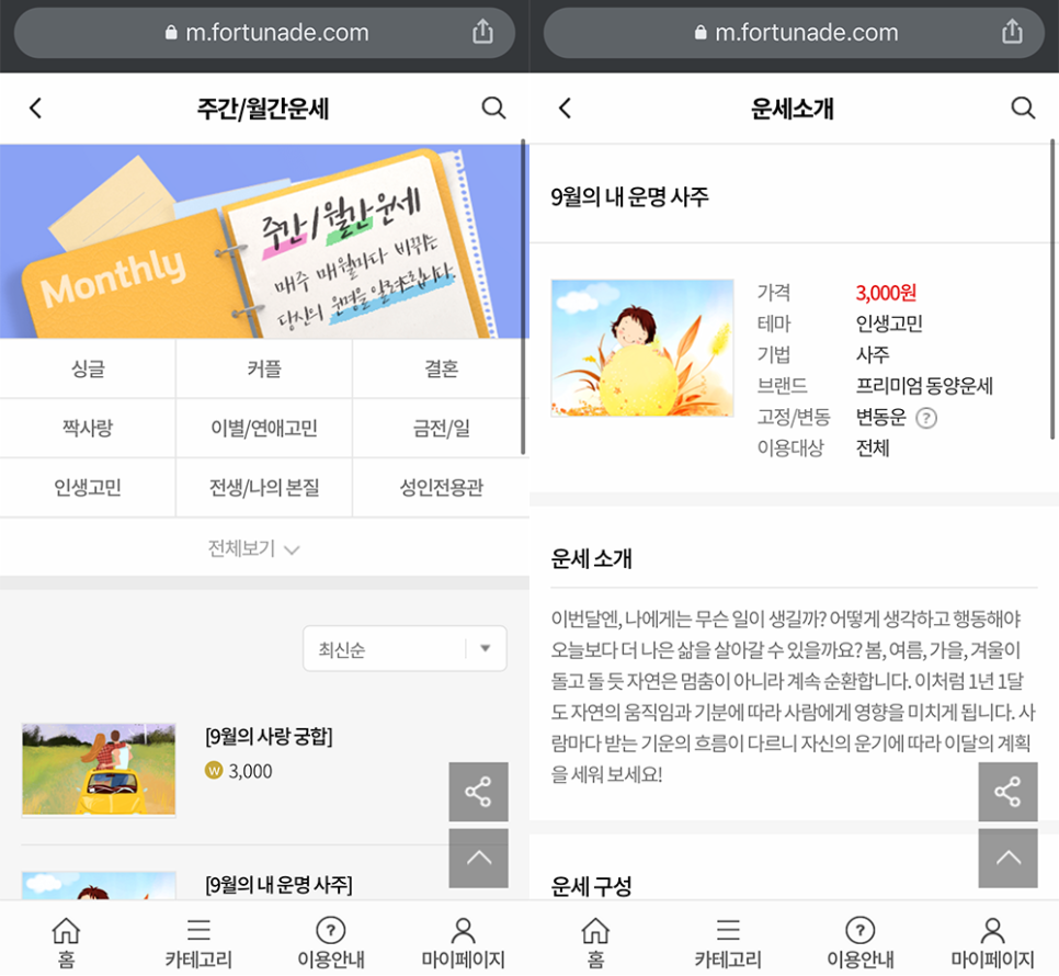 그래서 저는 이번에 ‘포춘에이드’라는 사이트를 통해 제 운세를 한 번 점쳐 보기로 했다.