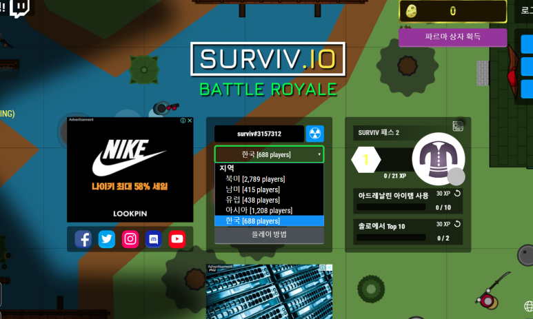 저는 현재 가장 인기있고 사람들이 즐겨하는 2D 배틀그라운드에 빠져있습니다. 이렇게 별도의 한국 서버가 마련되어 있어 1개의 렉이 없고 로그인도 필요 없어 심심할 때 부담없이 즐기는 데 적합합니다. 하지만 저의 실력은 좋지 않아서 지금까지 치킨을 먹어본 적은 없지만 고수의 실력을 관전하면서 열심히 배우고 있는 중입니다.
