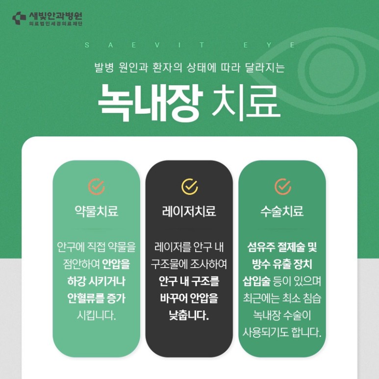 하지만 녹내장은 완치가 목적이 아니라 안압 유지에 있으므로 완치는 불가능합니다.