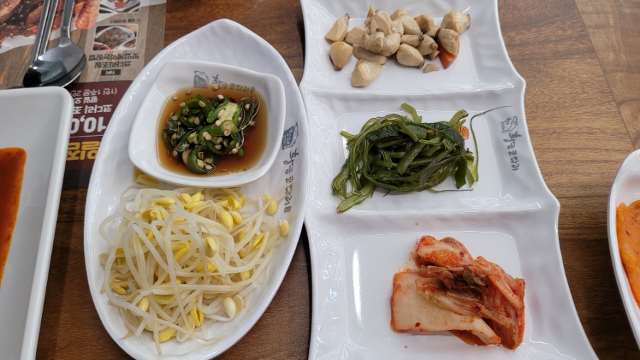 부족한 반찬은 셀프코너에서 이용할 수 있고 기본 반찬은 세팅해 준다.반찬도 건강식으로 준비되어 있어 맛있게 건강한 한끼를 먹을 수 있는 황금명태