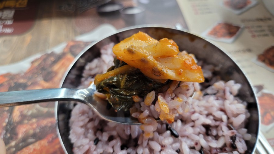 밥 위에 시래기와 코다리살 올려서 먹어도 최고죠?코다리조림 양념이 약간 떡볶이의 양념과 비슷해 더욱 친근한 맛이다.