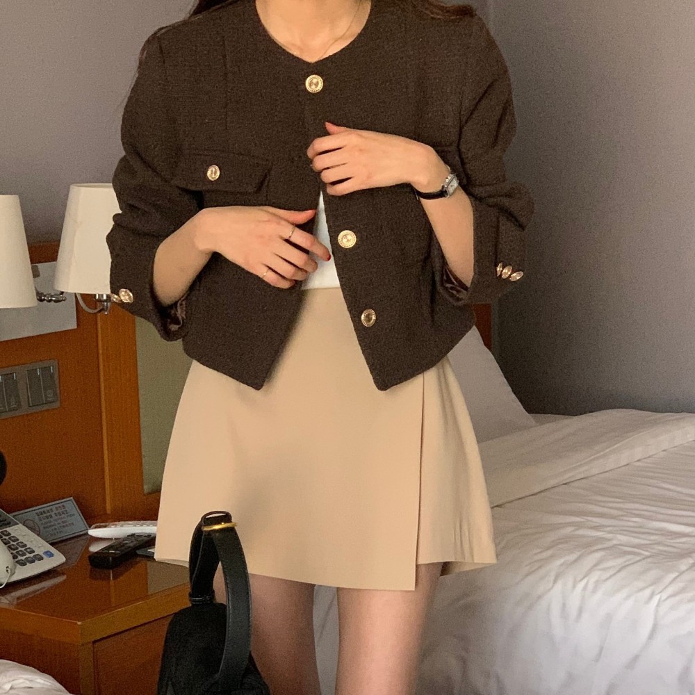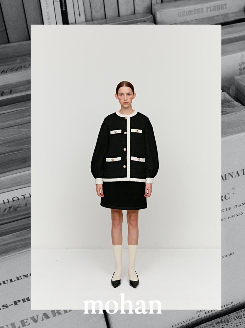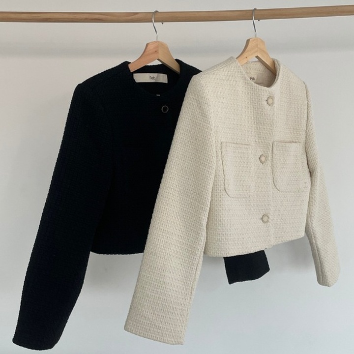 이 제품은 허리라인 중간까지 오는 크롭기장이라 발랄해 보이고 다리가 길어 보인다는 장점이 있습니다.또한 노카라 트위드 자켓으로 상의 이너와 매치할 때 V네크라인, U자 네크라인, 셔츠카라, 블라우스 등 다양한 스타일을 착용할 수 있어 활용도가 우수합니다.그래서 저도 매일 입고 있어요!