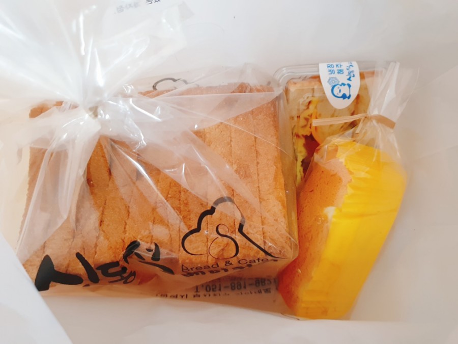 희망이 우유랑 배 도라지 과자를 가져왔습니다
