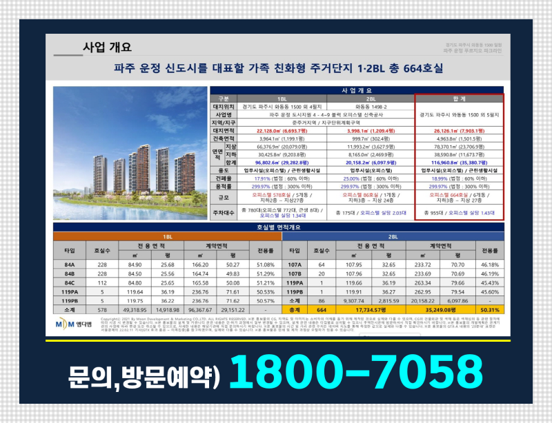 그 오피스텔은 경기도 파주시 와동동 1500번지 일대에 위치하며 지구단위계획구역에 포함되어 2개 단지에 걸쳐 주거형 오피스텔 664실과 근린생활시설이 공급된다고 합니다.