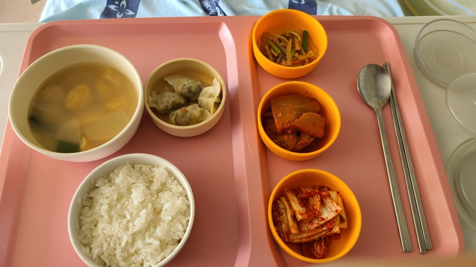 7월 7일부터는 별일 없이 집에 가는 것을 포기하고 병원생활을 즐겼다.이곳 내분비내과 선생님은 아침 5~6시와 오후 5~6시에 회진된다. 밤 10시쯤엔 다들 자는 분위기라 나도 이 생활패턴에 익숙해져서 좋았다. 건강한 생활습관.. 퇴원한지 딱 일주일이 지났다.밥은 그냥 별로 맛이 없는 병원 밥. 링거를 꽂아서 식판을 가져오느라 힘들었다.손등에 바늘을 찔렀을 때는 너무 위험해 보였는지 앞자리 할머니의 보호자분이 대신 가져다 주셔서 감사했지만 병원 생활 내내 항생제 부작용인 설사 때문에 고생은 했다.이건 다른 약도 안 듣고 나아서 항생제를 끊어야 없어지니까 존버했다.그리고 내 혈관을 찾기 어렵고 약한 혈관이라 링거를 새로 만들거나 피를 뽑을 때 간호 선생님들이 고생했다.겨우 꽂아두어도 금방 막혀서 터져서 바꿔야 하고 계속 반복된 ㅜ 입원 열흘 만에 30발 넘게 맞은 것 같다.하루일과 5시 회진&기상&피빼기|6시 아침식사|8시 엑스레이 촬영|12시 점심|17시 회진|18시 저녁|22시 취침