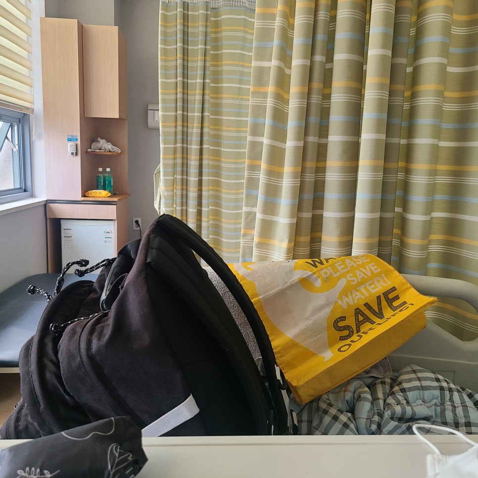 7월 2일 안성모병원 진료를 받으러 갔더니 목에 증상이 있다면 코로나 검사를 먼저 해야 한다고 하여 코로나 검사 후 진료를 받을 수 있었다.염증과 붓기 상태가 심해 음식 섭취가 어려운 상황이라 입원을 권유받아 그렇게 하기로 했다.이것저것 입원 전에 검사를 하고 입원 준비물을 가져와야 했기 때문에 집에 들렀다.집에 언제 올지 모르고 대신해줄 사람도 없어서 쓰레기 정리와 청소도 하고 짐을 싸서 다시 병원에 갔다.(이날 택시비로만 6만원 쓴 것 같다.) 오자마자 열을 쟀는데 열이 39도였다.간호사가 어지럽지 않냐고 물어보는데 목이 너무 아프고 열이 나는 줄도 몰랐다.항생제와 해열진통제를 맞고 갑자기 좋아져서 허락을 받고 편의점에 가서 이것저것 사왔다.애매한 시간에 입원해서 밥이 나오지 않았다.먹고 바로 배가 불러서 거의 남겨두고 잤어.그리고 자면서 먹은 걸 다 뱉어냈다.