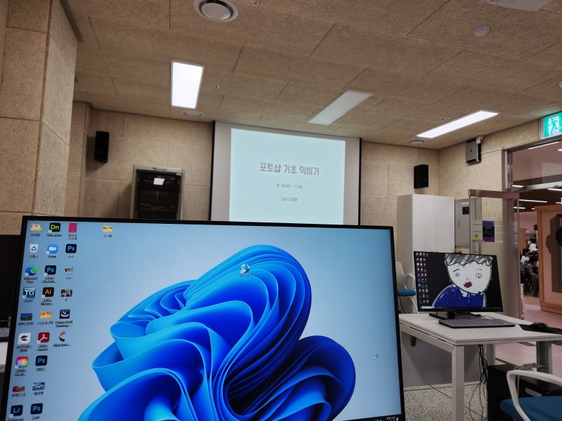 내부사진(1층)아주 새로운 건물이라고 느껴지나요? 너무 예쁘게 해놨어요.구경하고 싶었지만 수업시간이 촉박해서 빨리 한 컷만 찍고 3층으로 올라갔어요.ㅎㅎㅎ3층 사진, 오늘 어린이 마법학교라는 마술 교실도 가고 있는 것 같았습니다. 끝나고 찍었는데 저 자리에 아이들이 와글와글~ 매직 공연과 환호성도 중간에 들렸어요.오른쪽에 보니까 도서관도 아주 예쁘게 잘 되어 있었어요. 대여는 안 될 것 같고 앉아서 한 권씩 읽을 수 있게 해놓은 공간인 것 같아요.동네 주민분들이 아이와 함께 방문해서 아이들에게 책을 읽게 해주기에 정말 좋을 것 같은 느낌!3층 미디어 교육실이곳이 바로 포토샵 아트워크 클래스가 진행되는 미디어실!강의실 내부지금 보니까 좀 어둑어둑하게 나오네요. 강의실도 너무 깨끗하고 컴퓨터도 최신식이었어요!대학 PC실보다 훨씬 나은 강의 환경이었습니다. 그리고 수강하는 참가자 연령층도 학생과 함께 온 부모님부터 대학생, 어르신들까지 다양했습니다!사실..혹시 동네 어르신들 가르치는 프로그램에 괜히 제가 들어가있을까봐 걱정했는데 전혀 그럴 필요는 없었어요 ㅋㅋ●여러 이미지를 맞추어 효과 주기이렇게 실무에서 자주 사용하는 스킬을 배웠습니다! 손 사진과 불 이미지를 합성하여 불타는 손으로 표현하는 연습이었습니다.사진은 찍지 않았지만 그 외에도 사진 보정, 편집, 합성에 필요한 기본적인 방법을 배우고 연습할 수 있는 유익한 시간이었습니다. 선생님도 매우 친절하게 가르쳐 주셨습니다!깨끗하고 최신 센터 환경도 매우 만족스러웠습니다(웃음)아래는 추후 진행될 강의 일정표입니다![포토샵 기초 익히기], [포토샵을 이용한 사진 보정] 이 두 반이 운영되고 있습니다.저는 그 중에서 기초 익힐 것을 수강했어요!포토샵의 기본 화면 구성, 도구 이용 방법 등 기본적인 내용을 배웠습니다.다만 포토샵 기능을 어느정도 아시는 분이라면 조금 지루할 수도 있어서 정말 포토샵 한번도 켜본 적이 없어요~ 하시는 분들께 더 추천드립니다!가격도 저렴하고 내용도 충실하니 시간이 되시면 한 번 수강해보는 건 어떨까요?수강신청은 아래 답십리 영화미디어아트센터 홈페이지에서 가능합니다!↓ ↓ ↓ ↓ ↓https://dsnfilmart.or.kr/edu/program.php답십리영화미디어아트센터 영화/미디어예술 특화 플랫폼으로 미디어교육, 체험, 대관, 영화상영, 1인 미디어 전문인력 양성 등 dsnfilmart.or.kr그럼 주말 저녁 편안하게 마무리하시고 다음주도 화이팅입니다!도움이 되셨으면 좋겠습니다 부탁드립니다:)그럼 주말 저녁 편안하게 마무리하시고 다음주도 화이팅입니다!도움이 되셨으면 좋겠습니다 부탁드립니다:)