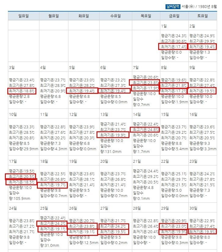 세이트 헬렌스 화산 폭발 3개월 만인 8월의 한국 날씨다.