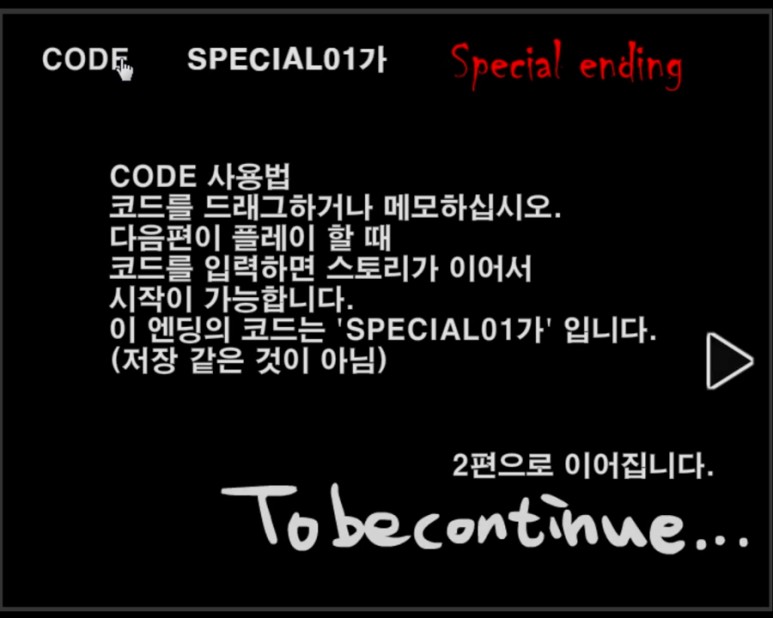 이번에 방탈출 플래시 게임을 하시면서 성공하시면 이대로 끝나는 게 아니라 앞으로 두 번째 작품으로 이어질 수 있으니 코드를 드래그해서 메모하시면 됩니다. 코드를 입력하면 나중에 스토리를 이어서 플레이 할 수 있다고 합니다. 단순히 세이브보드가 아니니 참고해주세요.