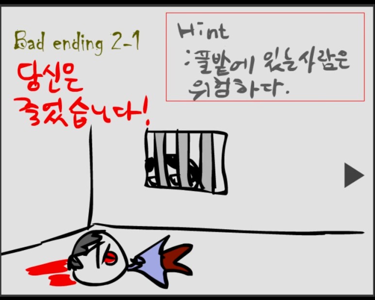 풀숲에 있는 사람은 위험하다고 경고하고 있으므로 항상 주의하면서 피하세요. 조금이라도 방심해도 지금처럼 죽음을 지속적으로 맞이하고 있기 때문에 이번 게임을 완벽하게 소화하기 위해서는 항상 의심하는 것이 좋습니다.