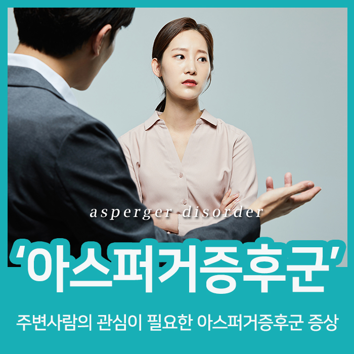 공감능력과 사회성이 결여되는데도 보통 언어적 소통능력이 부족합니다.아래 증상을 확인하시고 본인이나 주변 사람들에게 생각나는 분이 있는지 확인하세요!▶ 자신이 좋아하는 주제에 대해서만 반복해서 말한다▶대화의 흐름이 자기중심적 사고가 된다▶눈치를 못 읽는 것으로 알려져 있다.▶화났을 때, 즐거울 때 등의 감정을 띄우는 표정이 어색하다▶때로는 만드는 표정이나 말할 때의 억양이 과장돼 있다.▶상황에 맞지 않게 대화를 하거나 부적절한 단어를 반복한다.▶나와 남의 영역 구분에 대한 관념이 희박하다.▶ 자신만의 강박관념이 있습니다.▶ 복잡한 동작의 행동을 반복합니다.(팔짱을 끼었다 쥐었다 폈다) ▶어떤 때는 몸을 움직이는 것이 더디다.유아기에 나타나는 아스퍼거 증후군은 단순히 언어, 지적 발달이 늦어지는 것으로 여겨 놓치기 쉽고, 특히 내성적인 아이라는 생각 때문에 치료가 지연되기도 합니다.