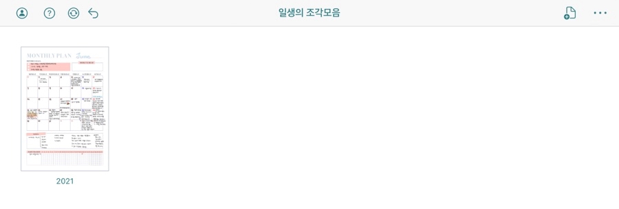 일단 아이패드 메인홈에서 collanote를 켜고 들어가면 보이는 제 화면 큭큭큭큭… 아직 별거 아니야저 폴더는 먼슬리만 모아두는 폴더야 아이패드 오래 쓰게 되니까 저기 스케줄, 일기 정리를 하면 폴더에 꽤 쌓일 거야 지금은 벌써 2021년의 하나.