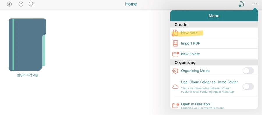 메인홈에 새로운 노트를 만들어보자