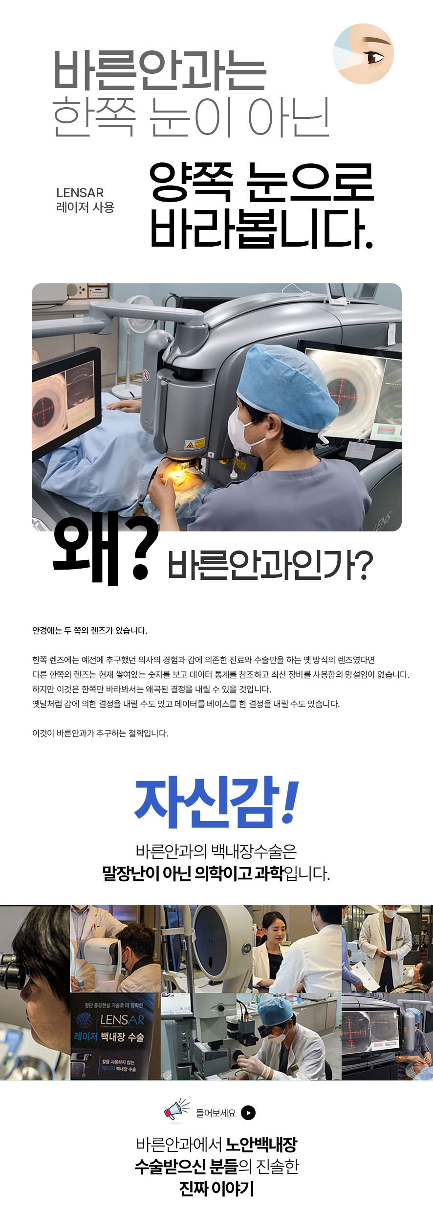 백내장을 치료하지 않으면 확실히 시력이 나빠지고, 게다가 실명에 이르게 하는 점을 고려하면 수술의 좋은 점을 생각할 가치가 있습니다.