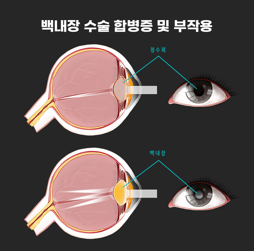 합병증은 다른 눈의 문제나 건강상태가 있는 경우 수술 후 문제가 발생할 가능성이 큽니다.