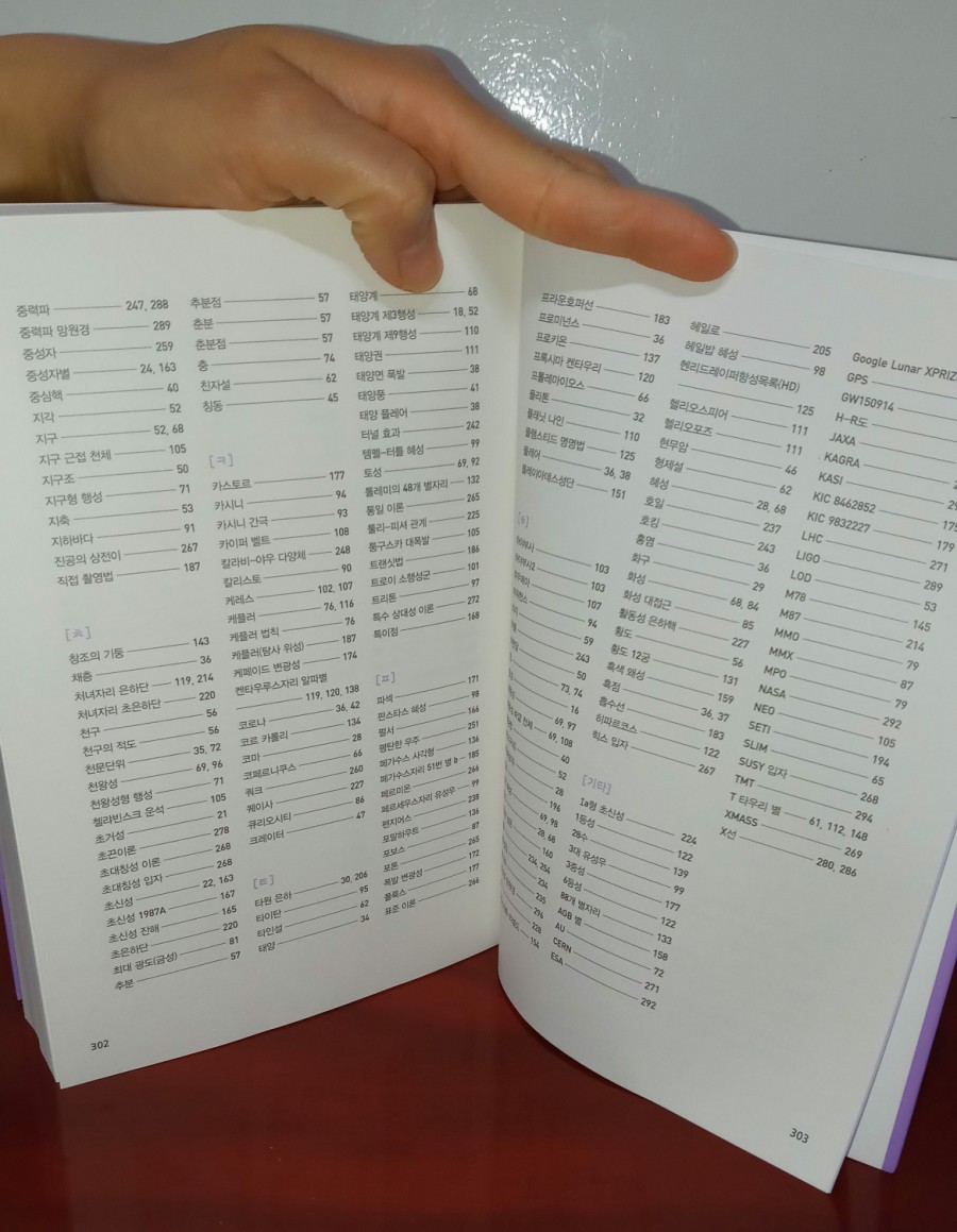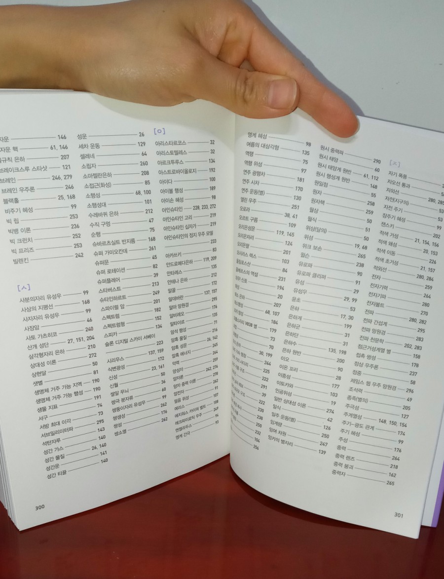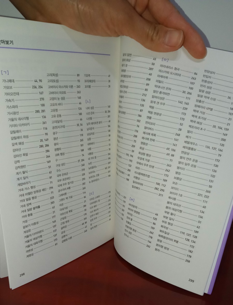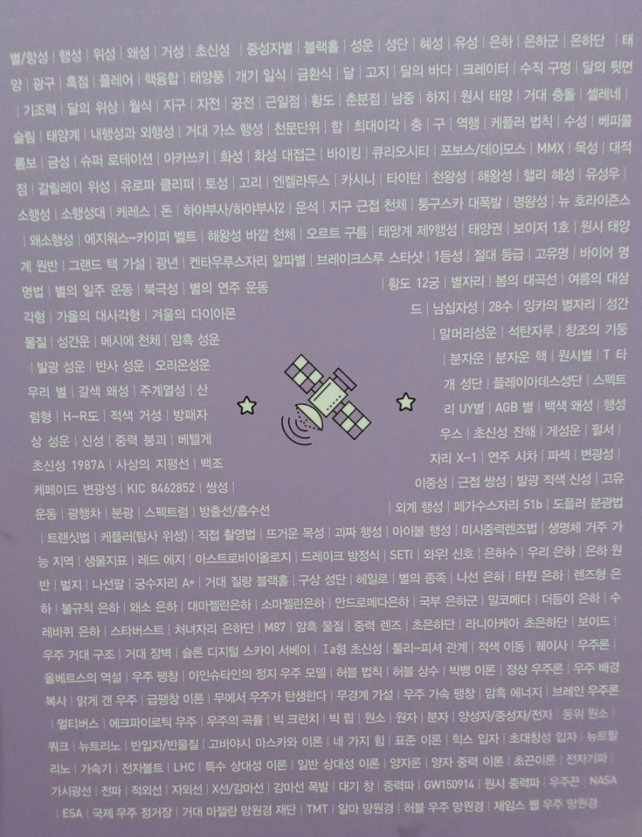 책의 순서를 보면 1장은 다양한 천체, 2장은 해와 달과 지구, 3장은 태양계의 친구, 4장은 항성의 세계, 5장은 우리의 은하와 은하우주, 6장은 우주의 역사, 7장은 우주에 관한 기초 용어입니다.
