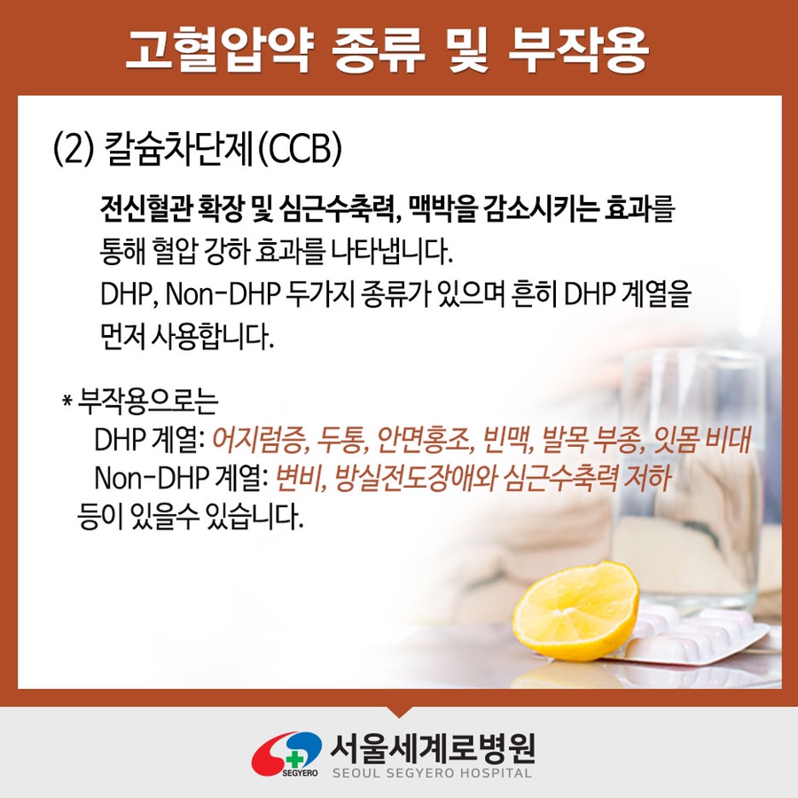 고혈압 약의 종류 및 부작용 (2) 칼슘차단제