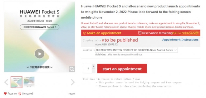 중국의 스마트 폰 생산 업체인 화웨이가 새로운 폴더블 폰 주머니 S(Pocket S)를 선 보였다. 2일, 계면 신문에 따르면 직사각형의 스마트 폰을 반으로 접어 방식의 주머니 S는 총 6색으로 가장 기본 용량의 128GB는 5988위안으로 약 116만원에서 시작된다. 256GB는 6488위안으로 11월 10일부터 시판하고 512GB는 7488위안으로 12월부터 판매한다.현재 시판되는 폴더블 폰 가운데 6000위앤 이하의 제품은 거의 없다. 그나마 모토로라 motorrazr2022가 5999위안였지만, 화웨이 제품이 나오면 시중에서 가장 싼 폴더블 폰이 될 전망이다.주머니 S는 우리에게 익숙한 삼성 전자의 갤럭시 Z플립과 비슷한 화면을 상하에 접는 방식이다. 둥근 터치 화면이 이번 주머니 S의 포인트가 되는 디자인이다. 120Hz주사율 및 2790×1188픽셀 해상도를 지원하는 6.9인치 OLED메인 디스플레이와 340×340해상도를 지원하는 1.04인치 OLED커버 디스플레이는 중급 스냅 드래건 778G4G칩셋에서 구동된다. 카메라와 칩 세트를 다운그레이드 하고 가격을 낮춘 것이다. 컬러는 블랙을 제외하면 모두 블루, 연분홍 등 파스텔 톤이다.IDC데이터에 따르면 2022년 제2분기 중국 시장 폴더블 폰 시장 판매량은 58만 7000대로 전년 동기 대비 132.4%증가했다. 상반기 누적 판매량은 130만대로, 화웨이가 폴더블 폰 시장 점유율이 50%를 넘어섰다.