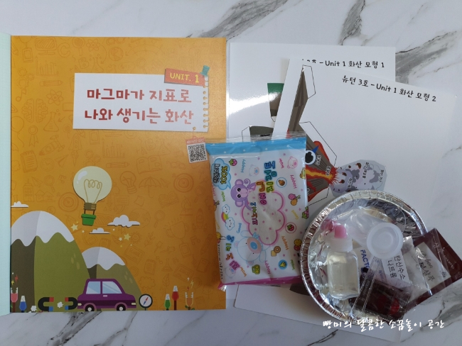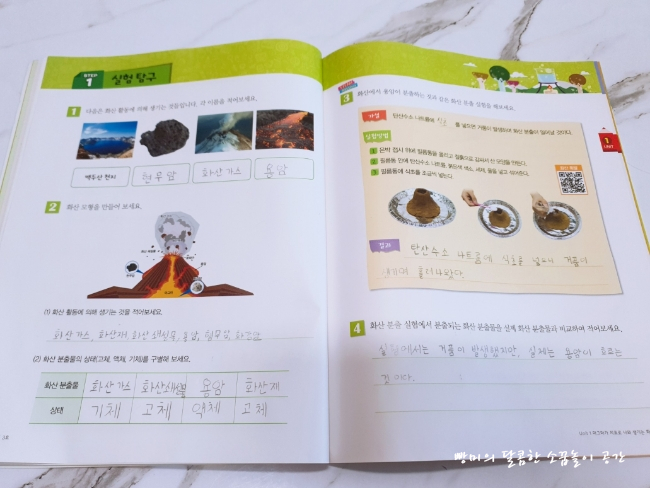 Step 1. 실험탐구 화산모형을 만들면서 ‘화산활동’으로 인해 발생하는 것을 물질의 상태에 따라 구분해 봅시다.