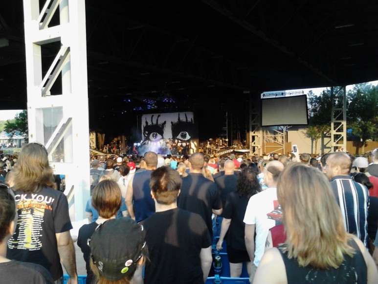 St. Louis, MO, Verizon Wirele ss Amphitheater (본인 촬영) 제 자리는 바깥 잔디보다는 안쪽… 좌석이긴 한데… 지붕이 조금 밖이에요. 지붕 안으로 들어가면 가격이 점점 올라갑니다. 아… 기둥… 저번 King Crimson 공연도 그렇고… 좌석이 비슷한 구역에 비해서 싸면 다 이유가 있어요