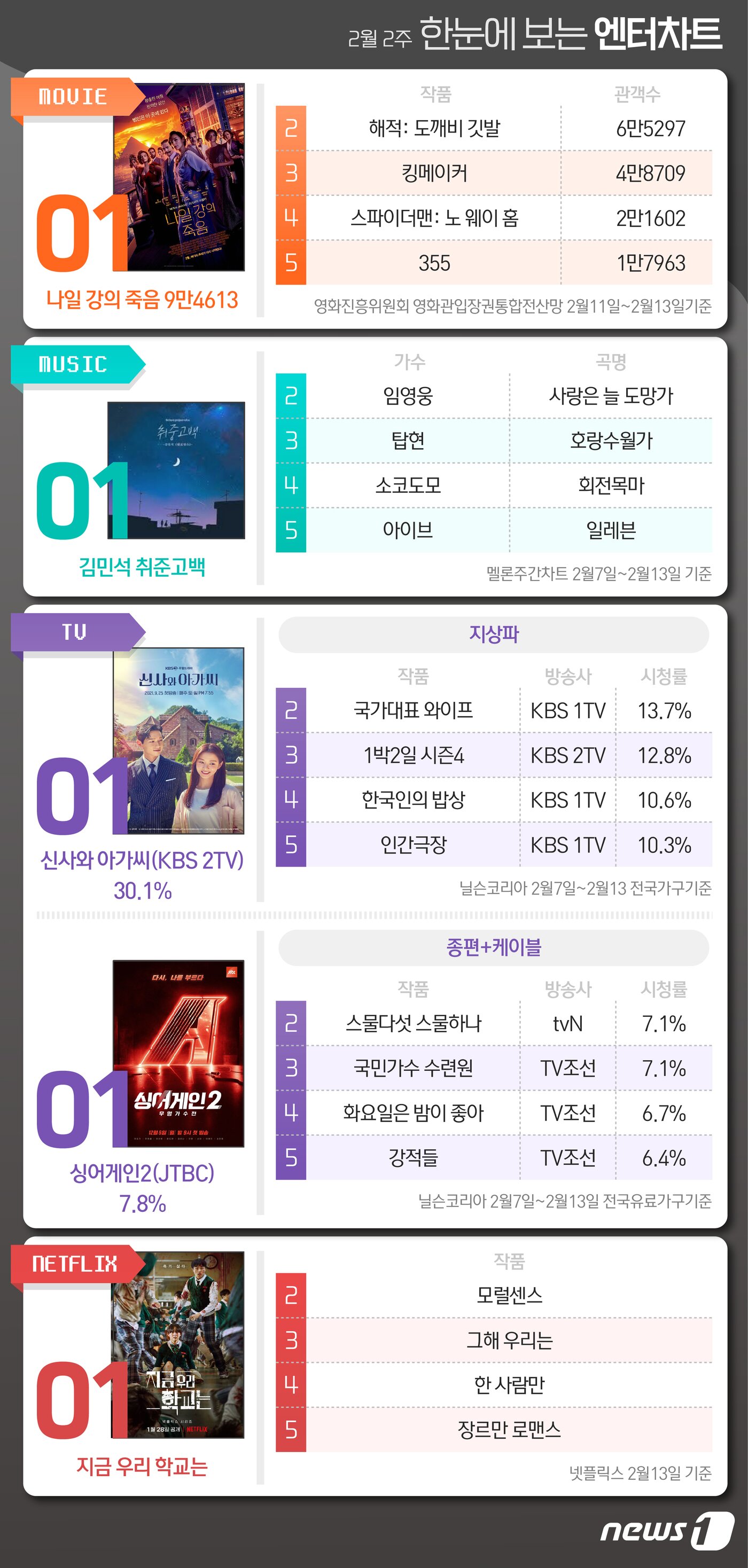 13 전설이 떠오른 <군대 쓰리가> tvN 2.3% 14 비밀의 집 MBC 6.7%