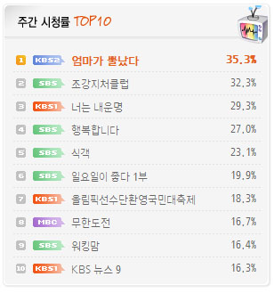 17 일요와이드연합뉴스 TV 1.9% 18 KBS 뉴스 7 KBS 16.3%