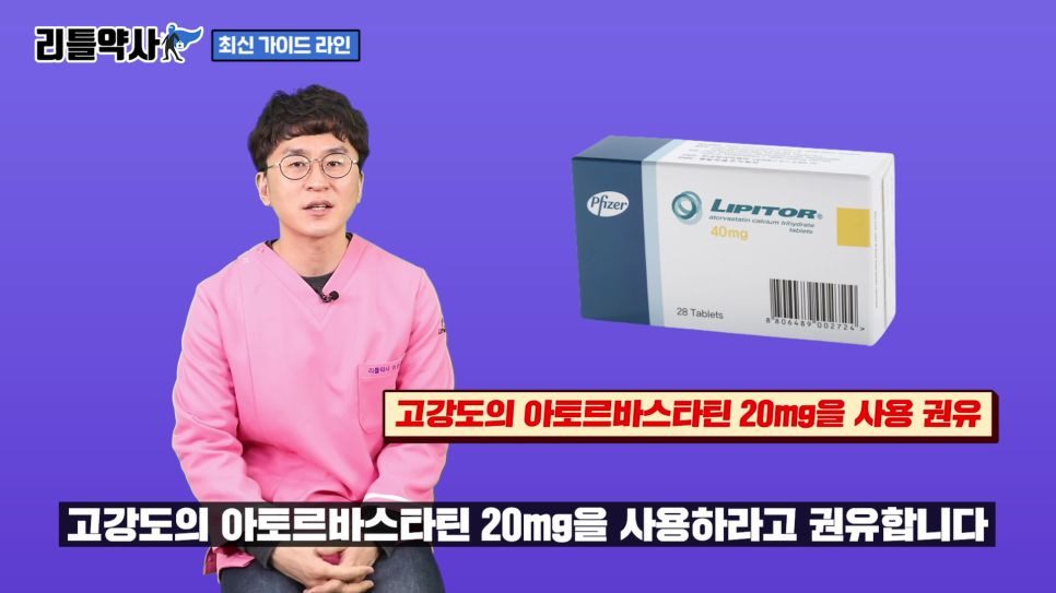 1차 투여 약물로 고지혈증 약 리피트와 같은 고함량품 20mg을 사용하는 것을 권장합니다.