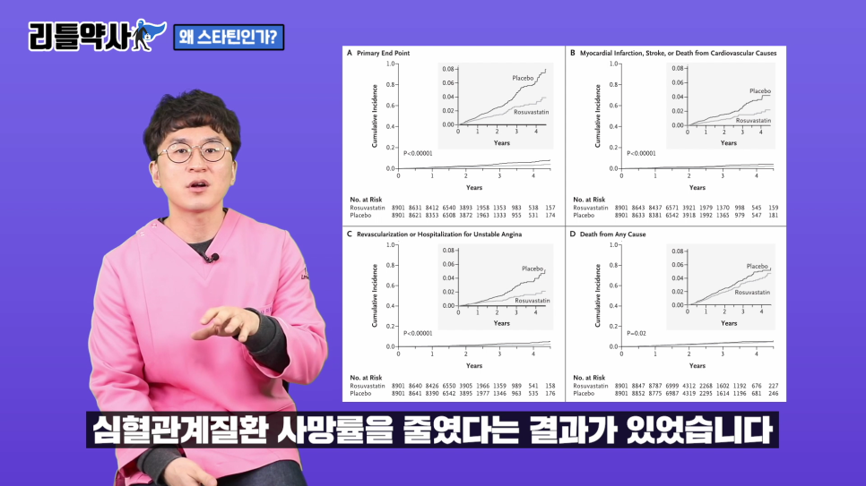 특히 로스바스타틴의 경우 주피터 연구라는 매우 유명한 연구를 통해 탁월한 LDL 감소 효과를 나타냈습니다.