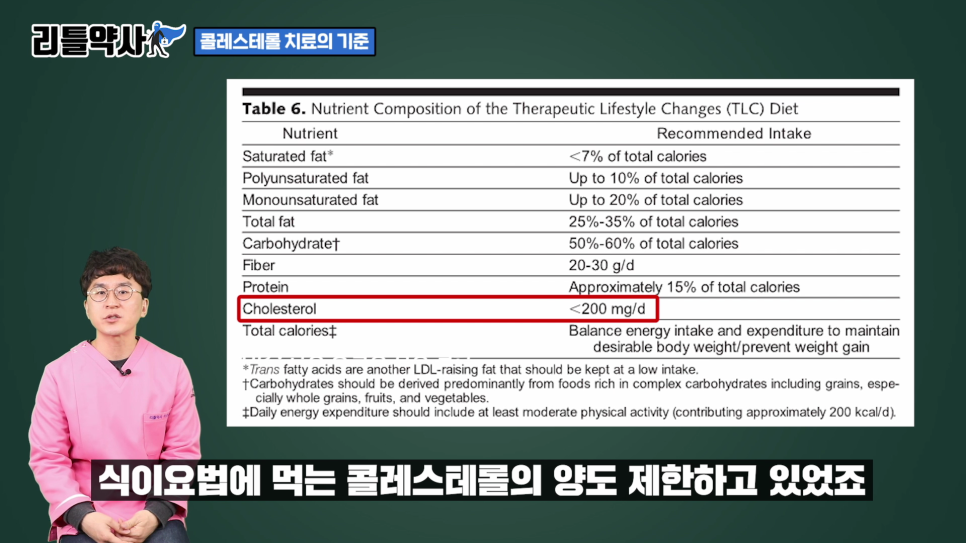 또 2001년 가이드 라인까지는요.식이 요법으로 먹는 콜레스테롤의 양도 제한을 하고 있었던 것입니다.