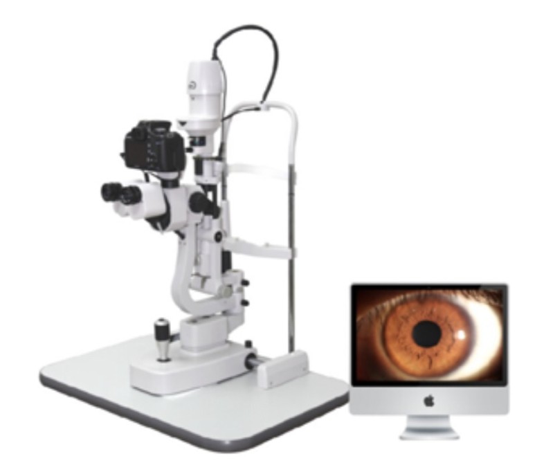 *세극등 현미경 검사 slit lamp 고배율의 현미경이 있는 세극등 현미경으로 눈을 확대해서 관찰하는 검사. 세극동은 특수한 조명장치와 양안 입체현미경으로 구성돼 있다. 최대 40배까지 확대 가능해 조명장치에서 나오는 빛의 강도, 방향, 크기, 폭을 자유롭게 조정할 수 있으며 길쭉한 빛을 눈에 대면 각막, 수정체 등이 삼극광선에 의해 잘린 광학절편을 보여 그 단면을 현미경으로 관찰할 수 있다. 빛이 들어오는 각도를 조절하여 초점을 이동시킴으로써 결막과 각막 위에서 관찰하고 점차 초점을 눈 뒤로 이동시켜 전방, 홍채 중심 정체를 지나 유리체 앞부분까지 관찰 가능.