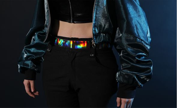 홀로그램 형식의 벨트를 활용해서 허리라인부터 바지끝까지 무난한 부분에 멋스러운 포인트를 줄 수 있는 게 너무 좋은 것 같아요 벨트와 잘 어울리네요